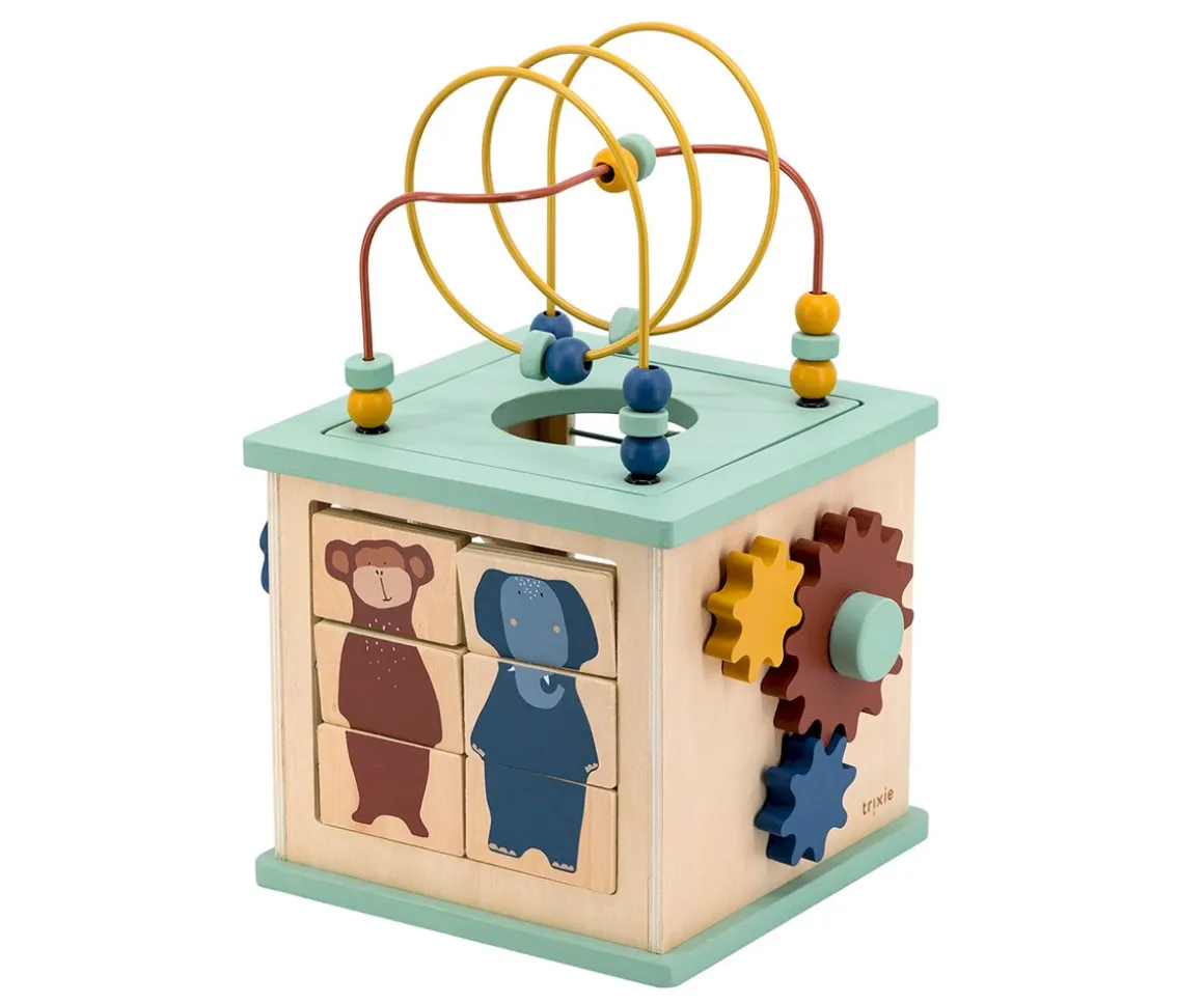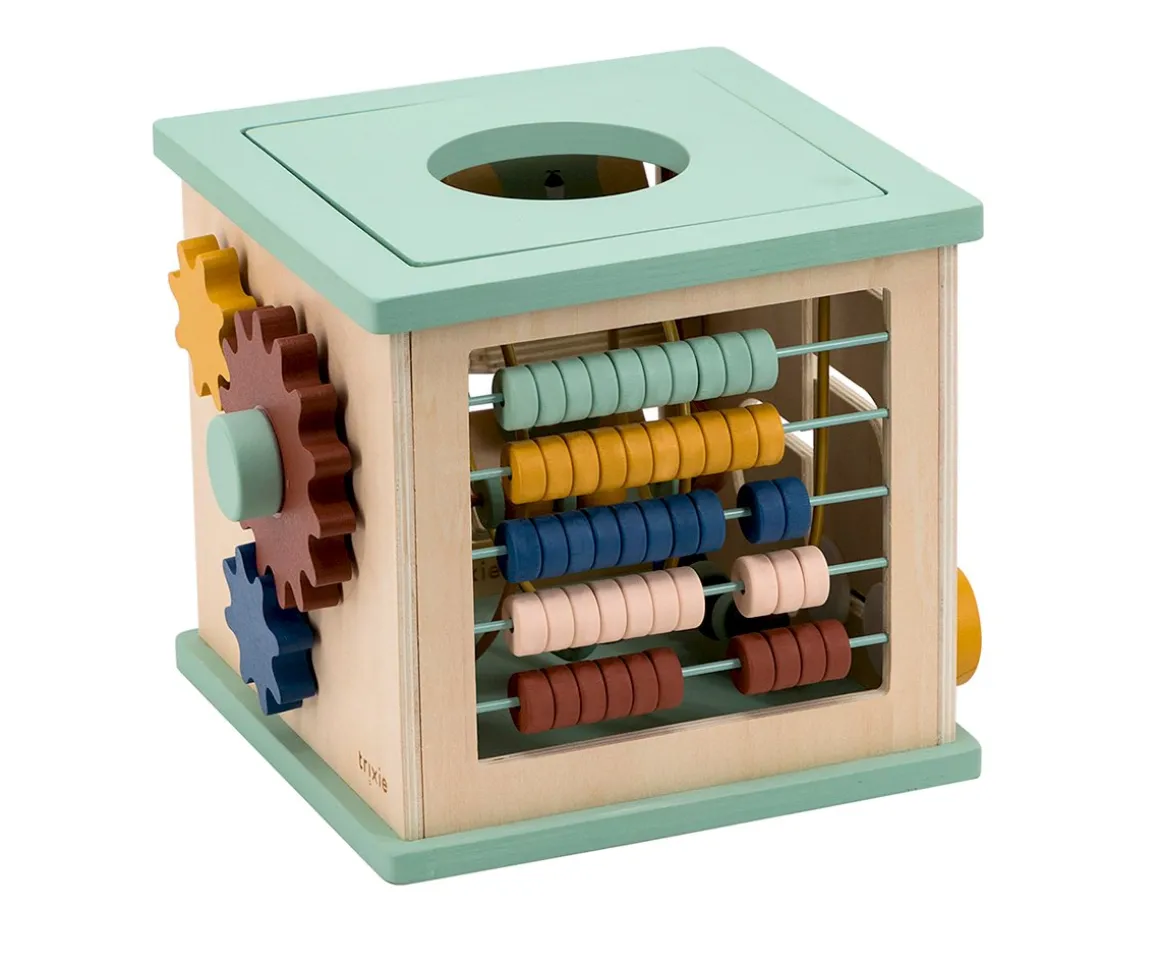 También incluye un ábaco para jugar a contar y un conjunto de engranajes para girar.