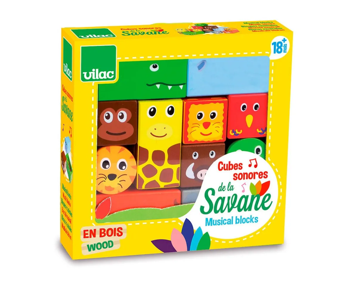 Cubos con sonidos suaves perfectos para las manos más pequeñas. Mientras juegan y descubren las diferentes formas, los peques desarrollarán la motricidad fina y la los sentidos.