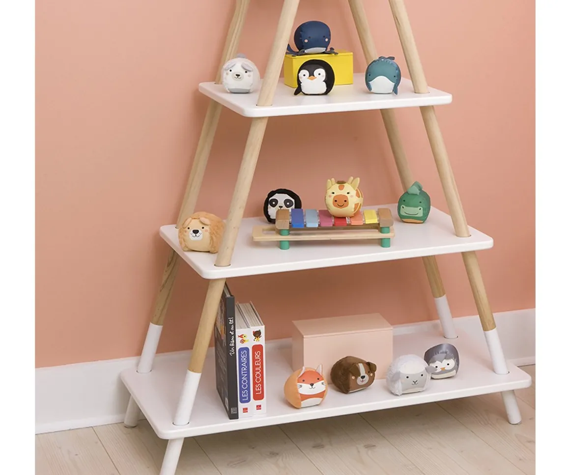El set de 4 preciosas pelotas de animales incluye un zorro, una oveja, un búho y un perro que acompañarán al niño en sus juegos. Sus formas redondeadas y su suave textura hacen que las manos de los más pequeños las puedan atrapar fácilmente. Sus suaves orejas en tejido rugoso y su cascabel interior estimulan la curiosidad del bebé.