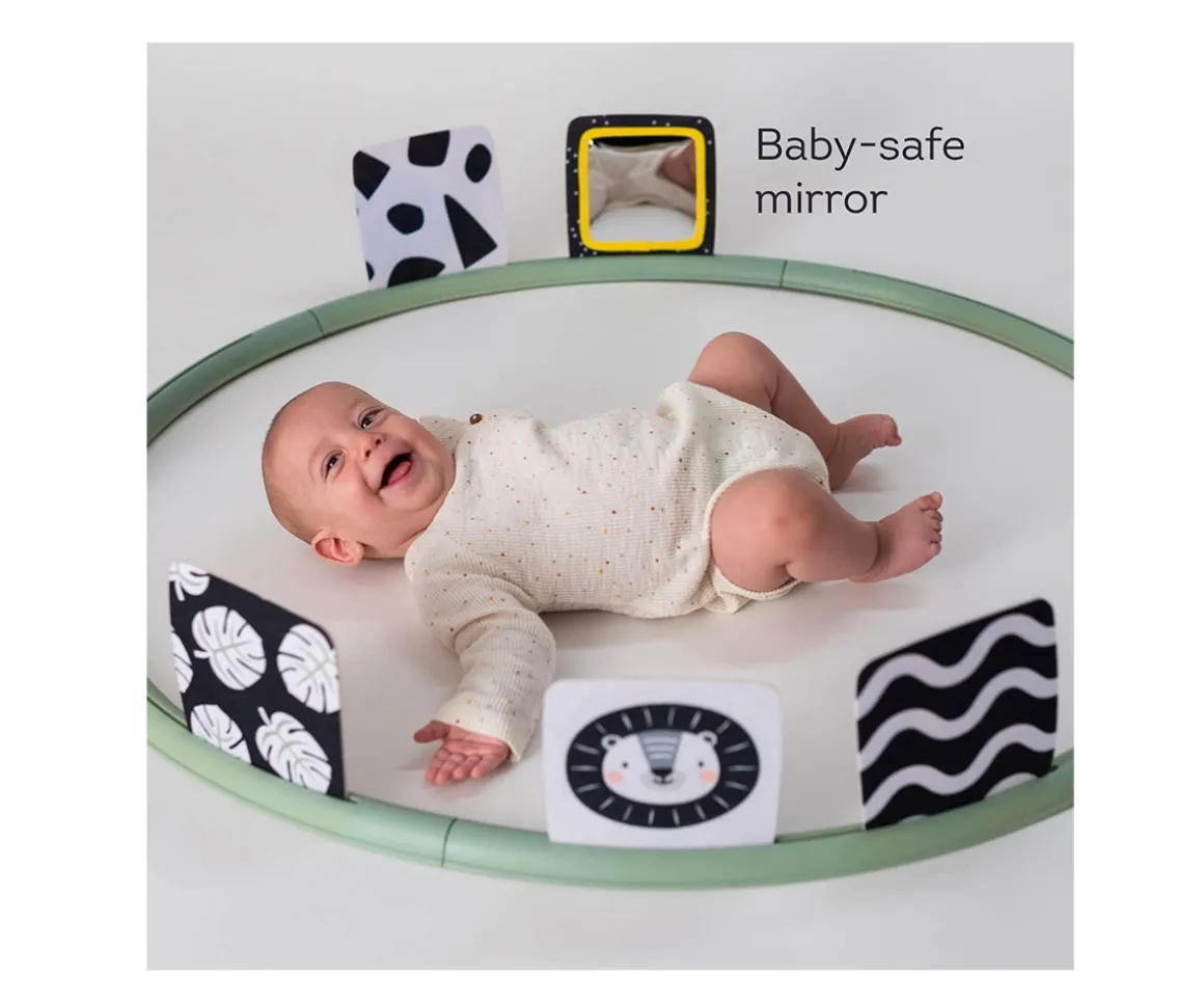 Está diseñado para estimular el desarrollo motriz y sensorial del bebé desde sus primeros meses. Su forma circular rodea al pequeño y le ofrece un entorno seguro donde puede explorar, jugar y fortalecer sus músculos mientras practica la posición boca abajo, fundamental para su desarrollo.