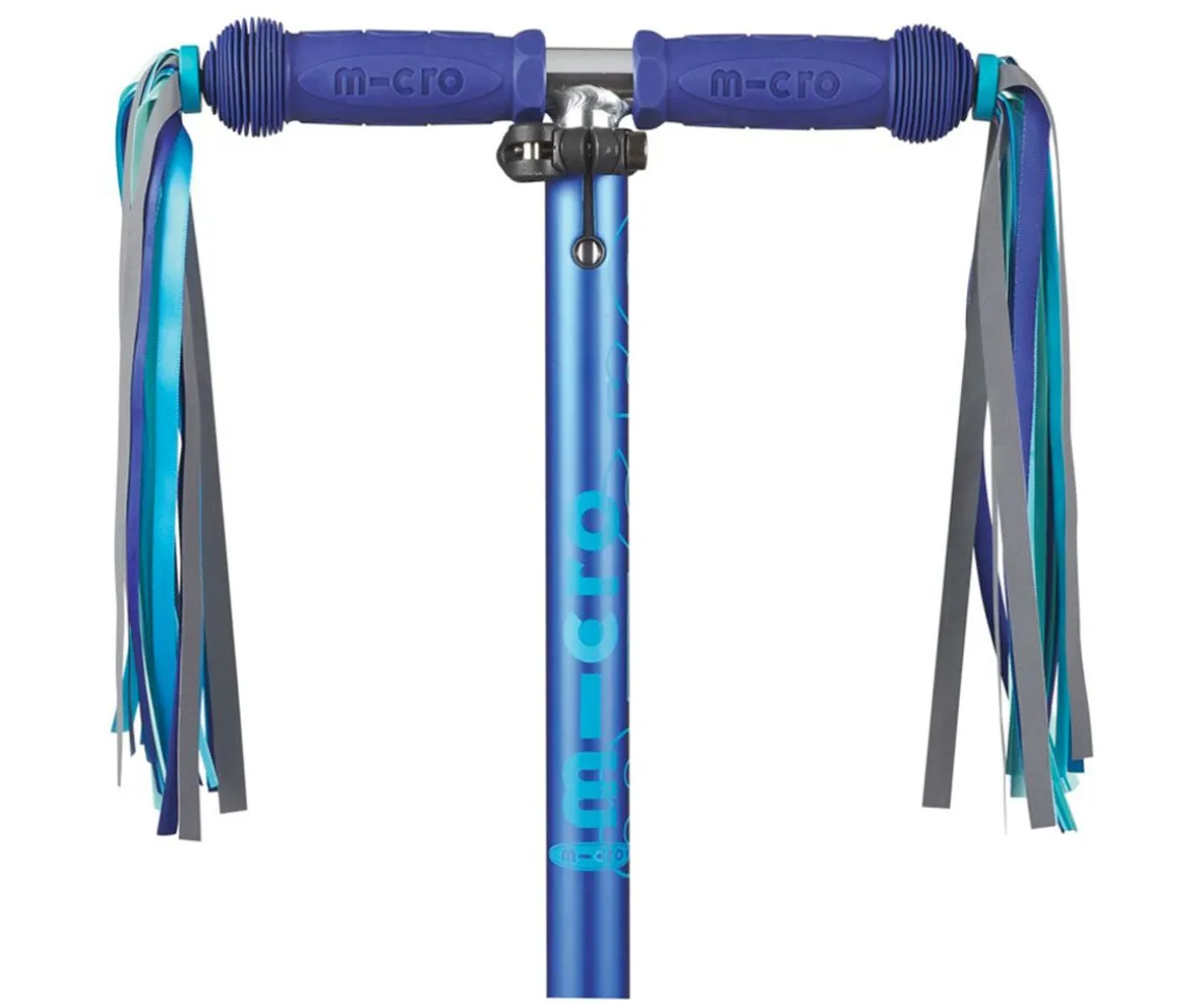 Flecos azul reflectante para customizar tu patinete o bicicleta. Sencillos de colocar gracias a un mecanismo que lo encajan en los puños del manillar.