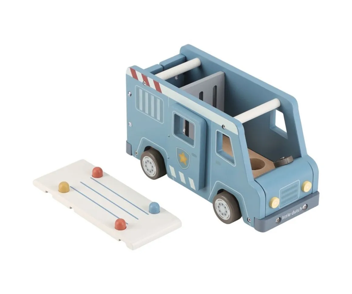 El Furgón Policial de madera FSC de Little Dutch es perfecto para que los más pequeños den rienda suelta a su imaginación con emocionantes aventuras de policías y ladrones. Este vehículo de juguete está cuidadosamente diseñado para fomentar el juego simbólico, el desarrollo emocional y las habilidades sociales desde los 2 años.