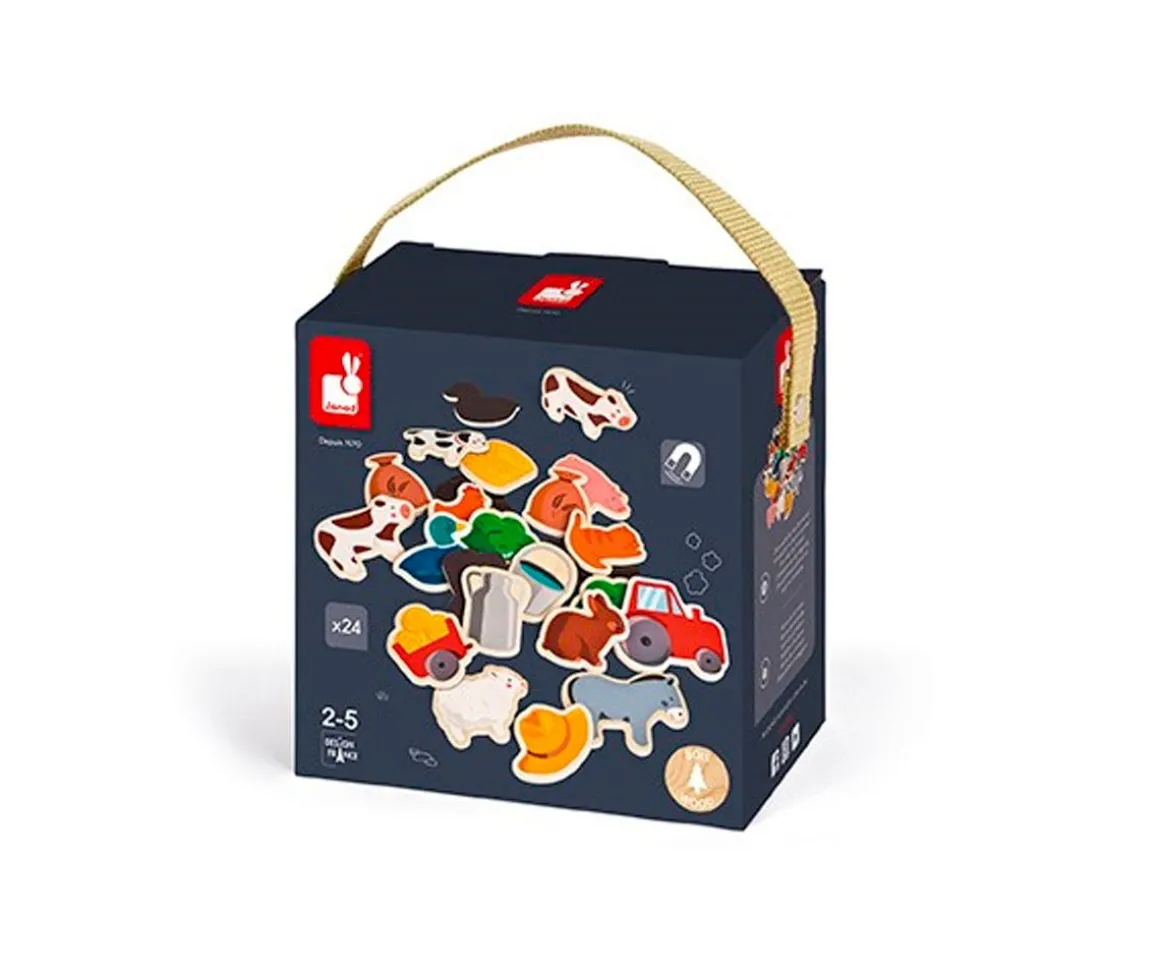 Contiene 24 imanes de madera perfectos para pizarras infantiles ó para el frigorífico, por ejemplo.