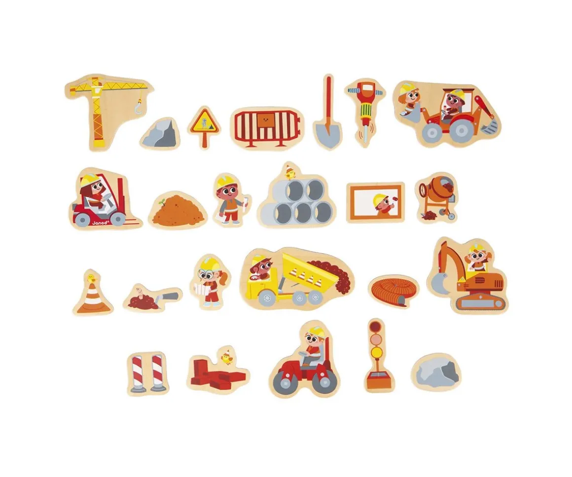 ¡Este juego de imanes de maquinaria de construcción suena increíblemente divertido y educativo! Con 24 imanes que incluyen desde hormigoneras y miniexcavadoras hasta grúas y equipos de señalización, los niños tendrán la oportunidad de crear todo tipo de proyectos de construcción imaginarios. ¡Seguro que la pizarra o la nevera se llenarán de acción con estos pequeños equipos de albañiles y maquinaria!