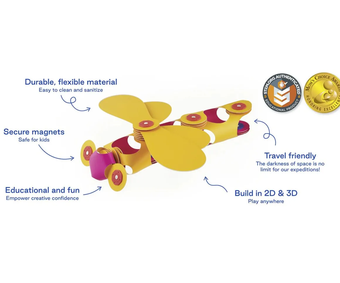 Las piezas de Clixo se doblan y se conectan con imanes fuertes y fiables para crear figuras únicas. - Portátil y compacto:
