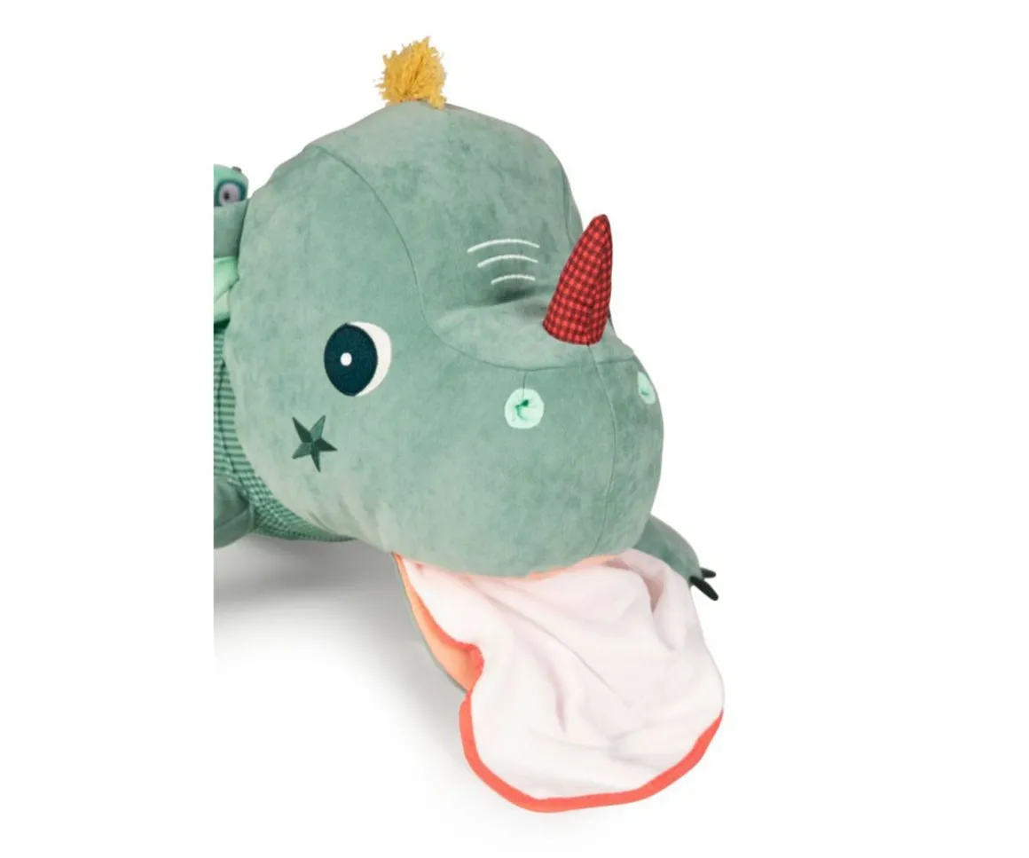 Joe el dragón es un peluche gigante y adorable lleno de actividades, es el mejor compañero para los peques. Este peluche no solo es perfecto para abrazar, sino que también cuenta con un bolsillo secreto en su boca donde los niños pueden guardar su pijama o pequeños tesoros.
