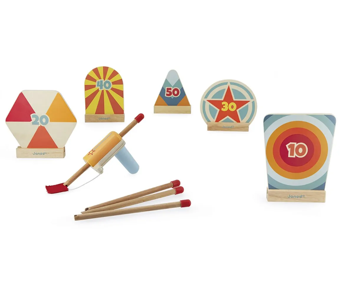 ¡Apunta y dispara! En este juego puedes jugar con 5 dianas de colores con soporte para anotar de 10 a 50 puntos. La parte posterior de los dardos es magnética, y las puntas están hechas de silicona para mayor seguridad. Este juego de habilidad, que se puede utilizar en interiores y exteriores, permite desarrollar la motricidad fina, la destreza y la concentración de los niños.