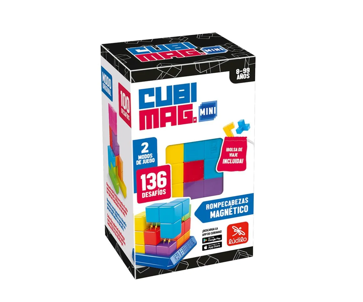 ¡Desafía tu ingenio con Cubimag Mini®! Utiliza la base como soporte y ejercita tu cerebro con este increíble rompecabezas magnético.Tiene 138 retos en 3D para mejorar la visión espacial, la concentración y la lógica, y 3 niveles diferentes. ¿Podrás resolver todos los retos?