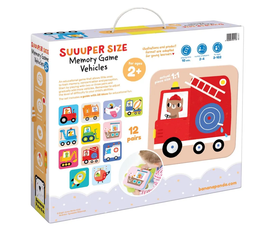¡Los peques se lo pasarán en grande emparejando los vehículos con este juego de memoria y sus tarjetas gigantes!