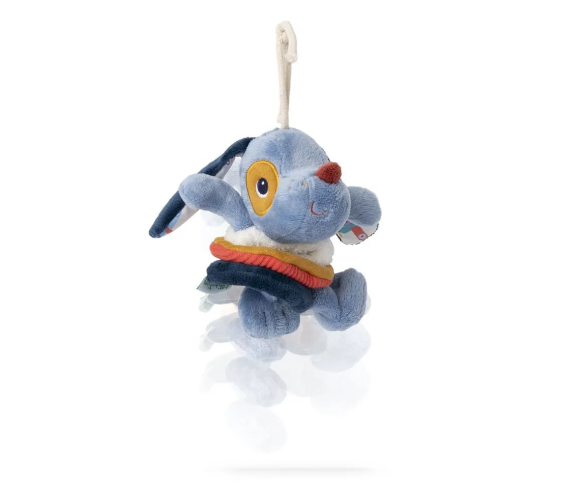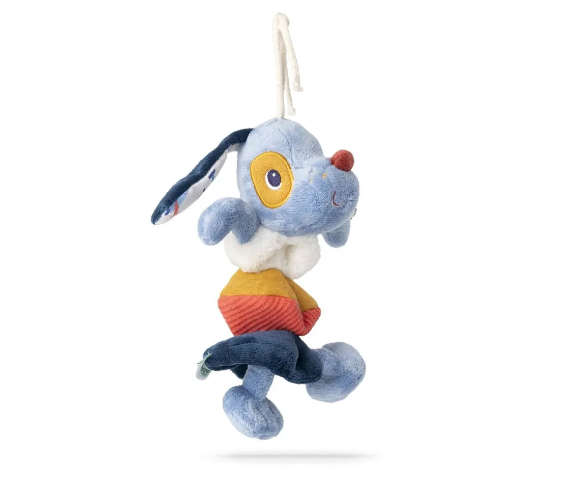 Al tirar de las patas, Jules el perrito sonajero, empieza a bailar alegremente. ¡Qué sensación tan divertida y sorprendente para las manitas de los más pequeños!