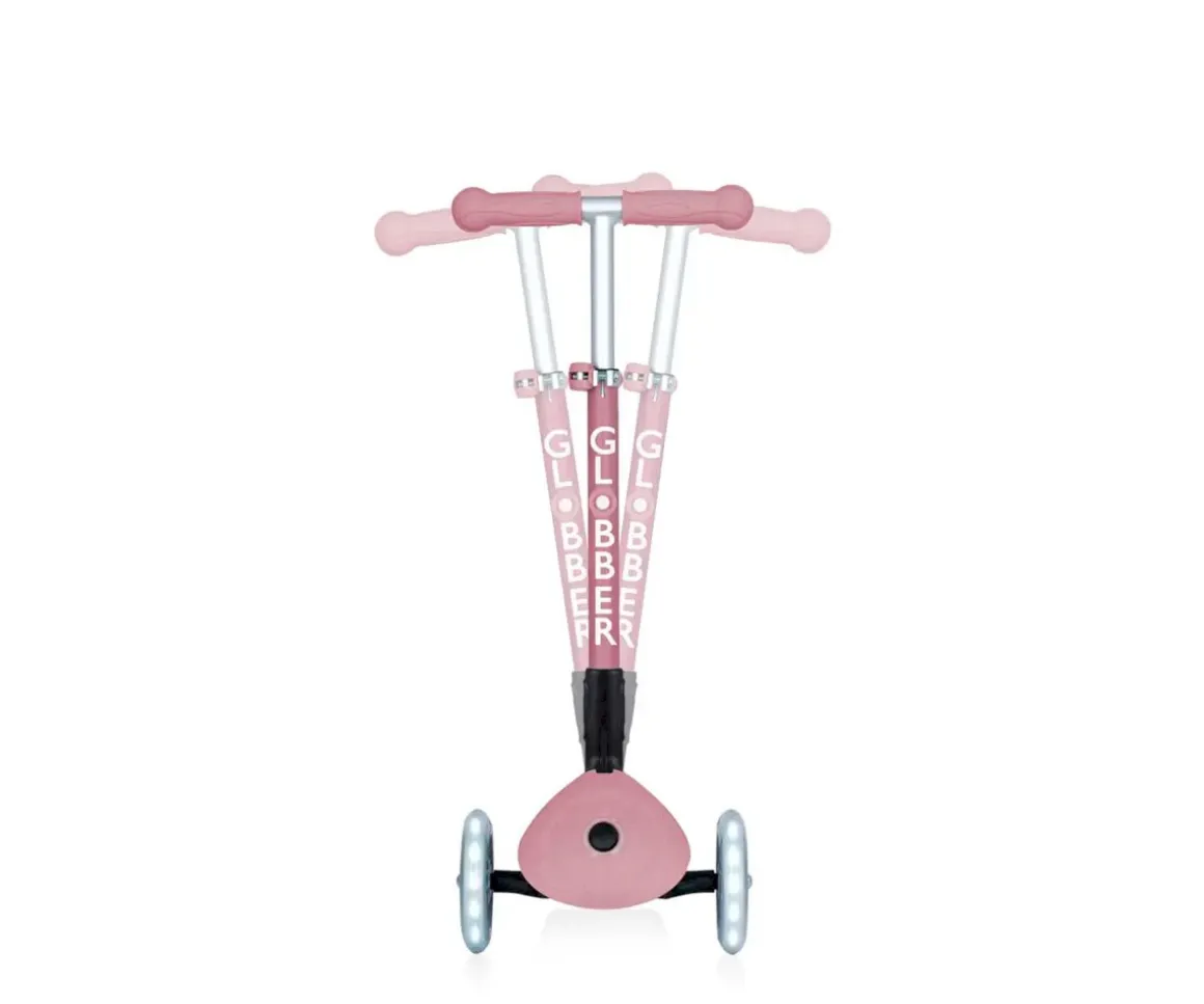 El patinete infantil Junior Foldable Lights es ecológico y está fabricado con un 60% de plástico reciclado. Tiene 3 ruedas, bloqueo de dirección y un sistema de plegado y barra en T ajustable. La misma estructura pero con materiales más ecológicos.