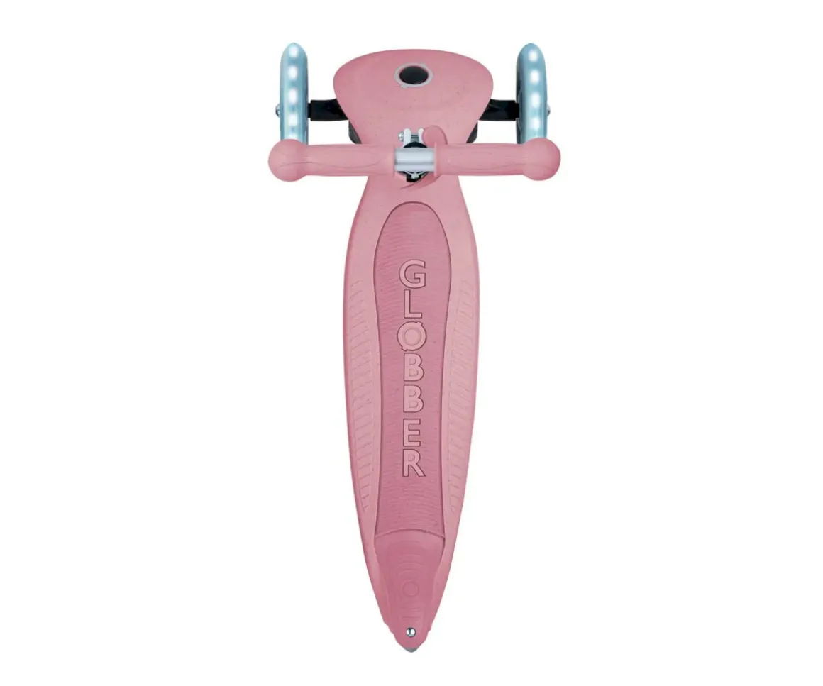 El patinete infantil Junior Foldable Lights es ecológico y está fabricado con un 60% de plástico reciclado. Tiene 3 ruedas, bloqueo de dirección y un sistema de plegado y barra en T ajustable. La misma estructura pero con materiales más ecológicos.