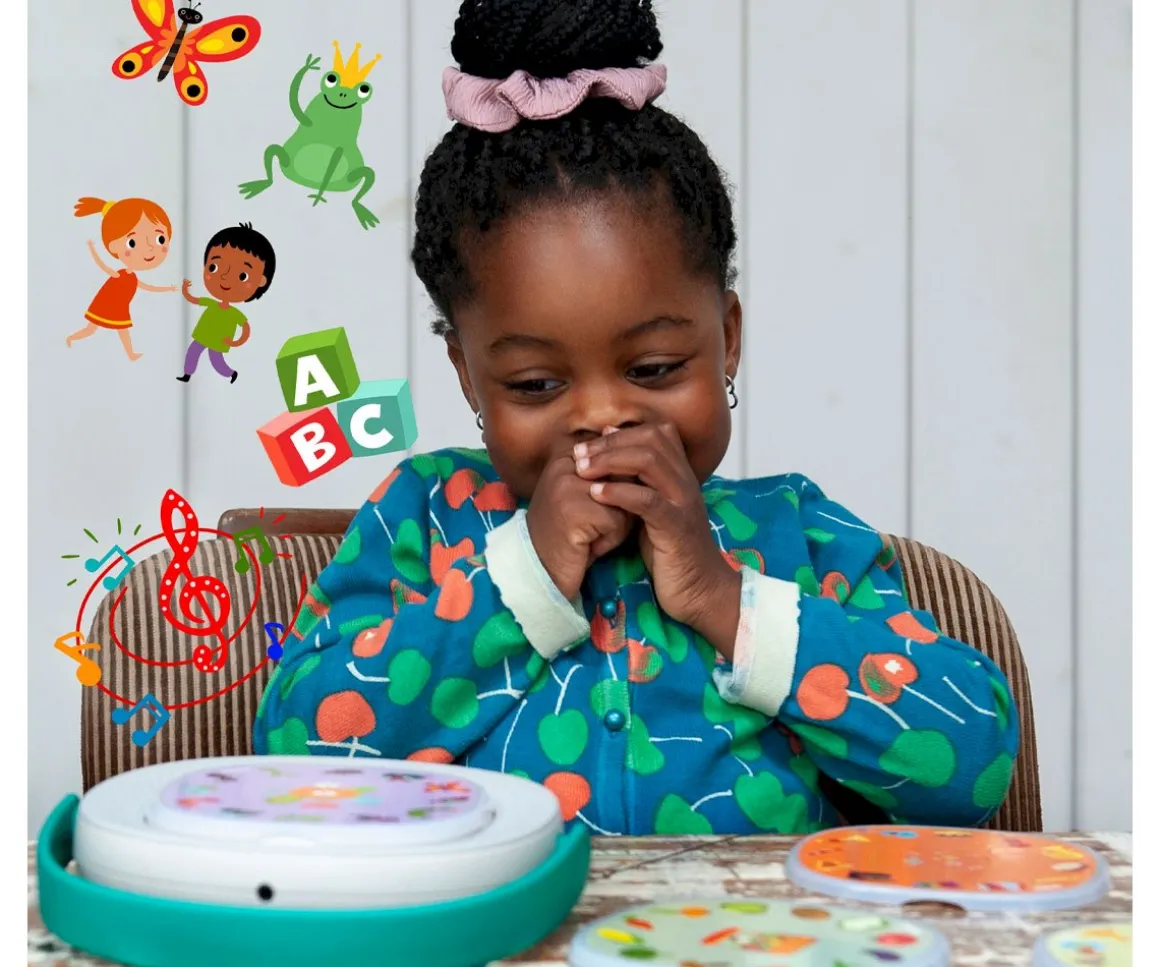 Timio se trata de un reproductor y discos con contenidos divertidos, emocionantes y atractivos para niños de 2 a 6 años. Aprenderán el abecedario, los números, los colores, los animales y los objetos, podrán escuchar cuentos y también música.