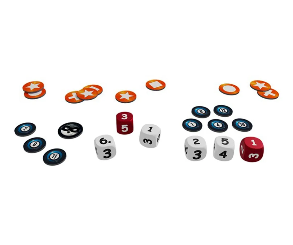 - Incluye: 1 caja fuerte (cubilete), 32 fichas, 6 dados, 1 marcador de inicio e instrucciones