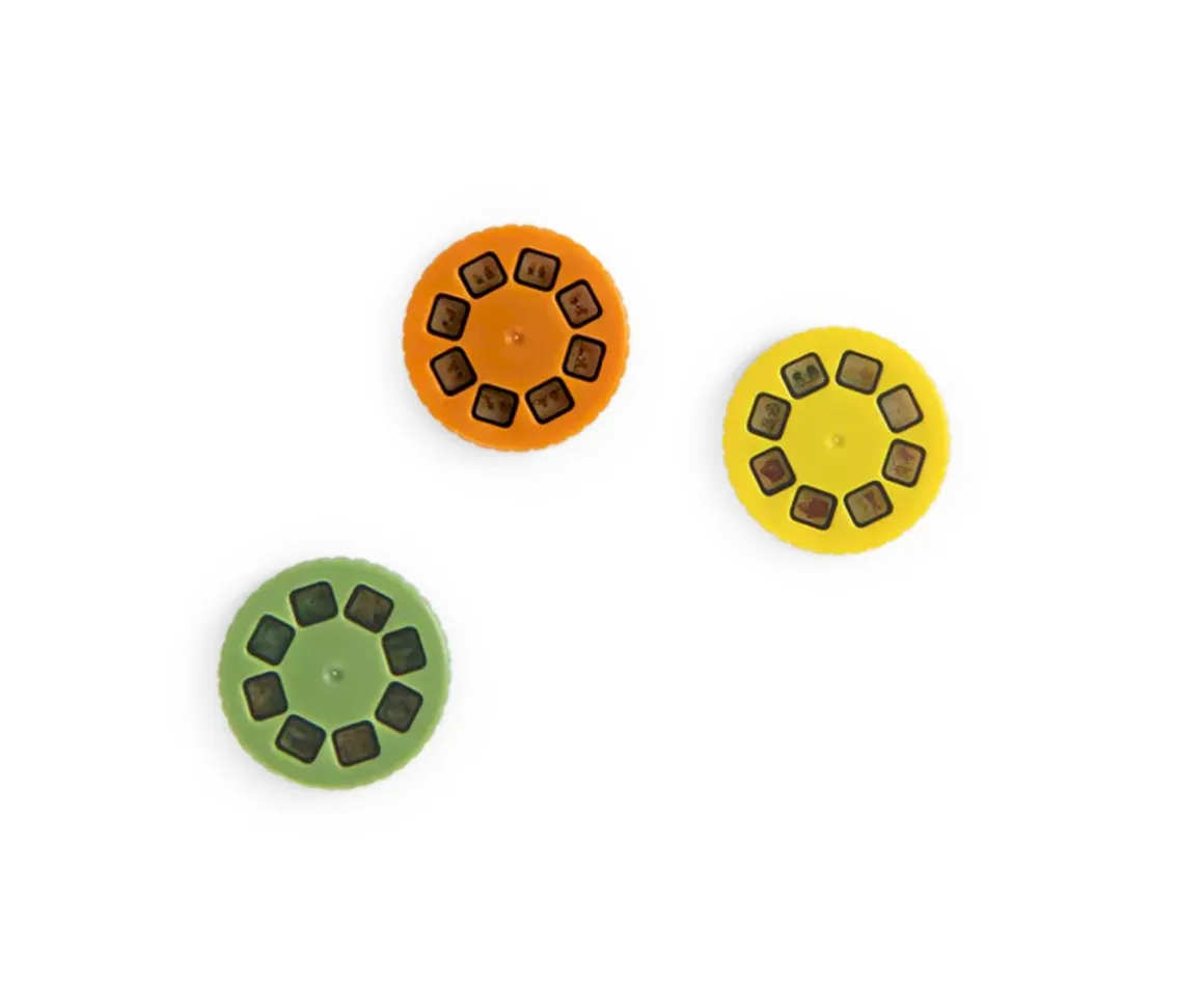 Se compone de una pequeña linterna (lleva las pilas incluídas) a la que se le pueden insertar tres ruedas con diferentes imágenes, de temática relacionada con las aventuras de la ardilla. Las preciosas ilustraciones proyectadas en la pared, el techo o en cualquier otra superficie, nos darán pie para inventar miles de historias.