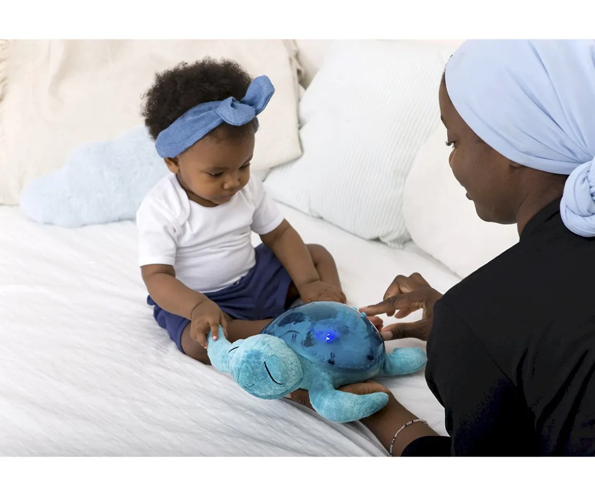 El miedo a la oscuridad ya es una cosa del pasado. Esta tortuga de combina funciones visuales y sonoras, Tranquil Turtle transformará la habitación de tu pequeño en un oasis de paz.