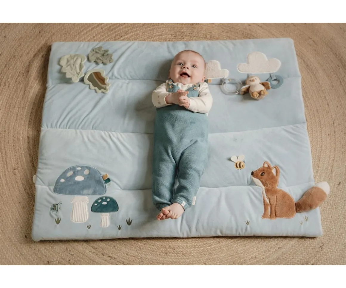Esta manta acolchada está llena de texturas y características que estimularán sus sentidos. Hecho para horas de entretenimiento los peques encontrarán hojas crujientes, suaves nubes, un zorro muy suave, un búho y un escarabajo.