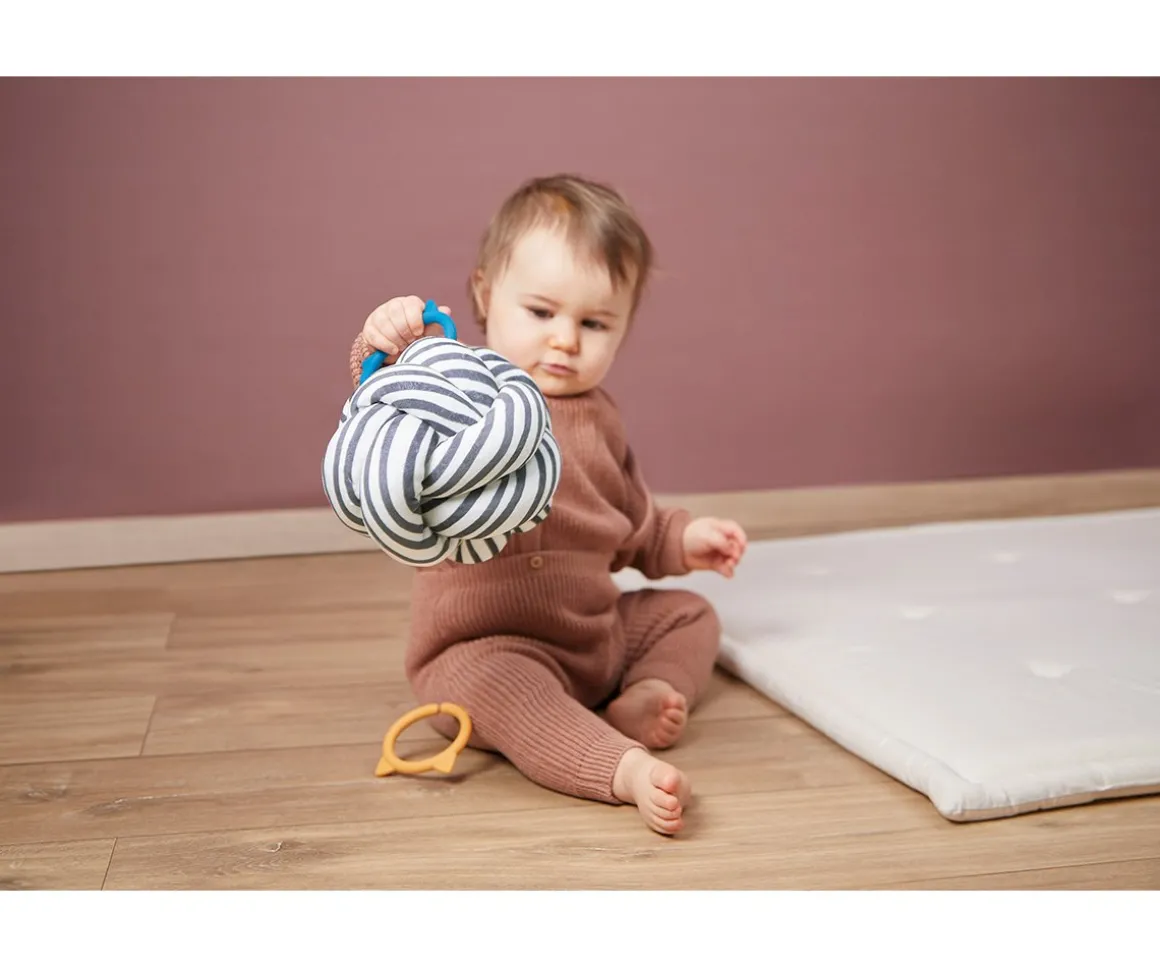 Una original bola sensorial hecha de entrelazado que facilita que los peques la sujeten, sostengan y manipulen con mucha facilidad, fomentando al mismo tiempo su motricidad fina y sus sentidos.