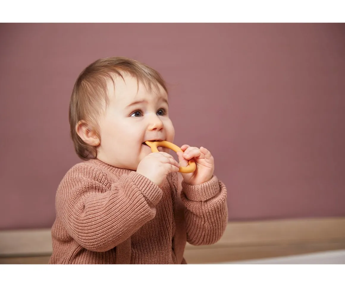 Cuenta además con 3 anillos con forma de gato que podrás poner y quitar en la bola, fabricados en silicona. Podrán usarlos como divertidos mordedores para aliviar sus encías durante el proceso de dentición.
