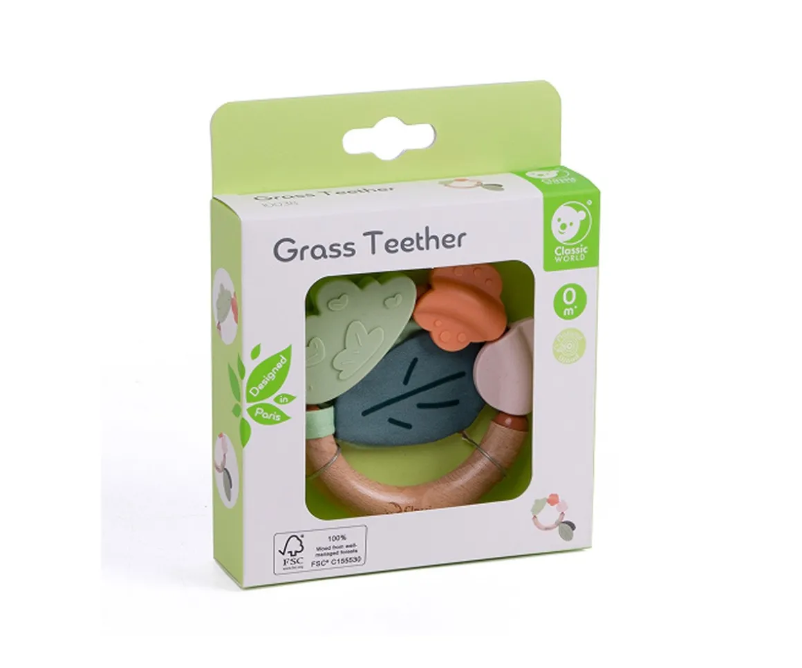 Alivia las encías de tu bebé de forma natural y segura con el mordedor Grass de Classic World, una opción ecológica y con estilo para los primeros meses de tu peque. Diseñado con madera y silicona , este mordedor combina suavidad y resistencia para que tu bebé pueda explorar, morder y calmar sus encías con total seguridad.