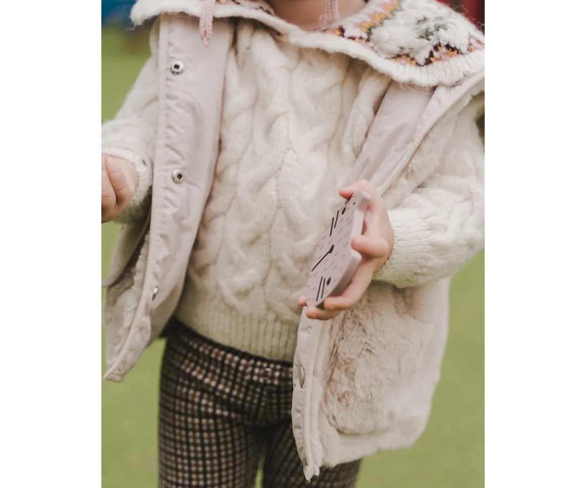 Mordedor fabricado en silicona con pequeñas protuberancias para aliviar las encías doloridas.