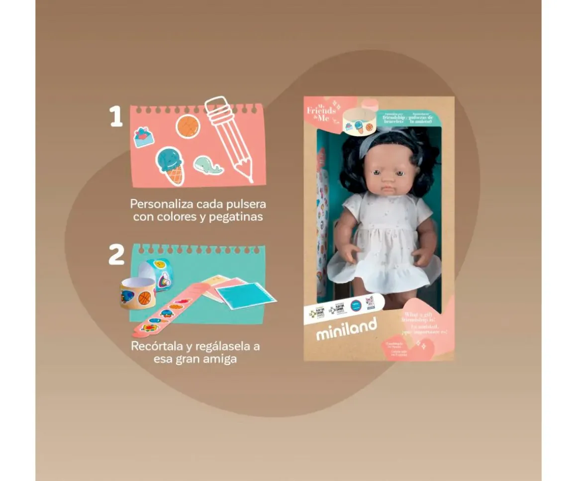 Este muñeco pertenece a la colección My Friends & Me de Miniland se distingue por su compromiso con la diversidad y la tolerancia, enseñando a los niños a valorar y respetar las diferencias.