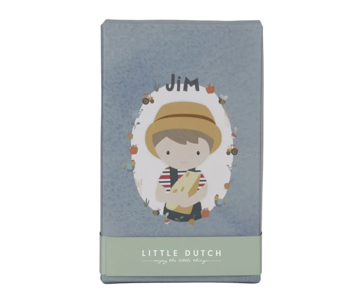 Jim es un adorable muñeco de felpa muy suave y encantador para darle buenos abrazos. Viste con un mono de pana azul y le encanta el queso por lo que va acompañada de un trocito bien generoso, que los peques podrán quitar y colocar entre sus brazos.