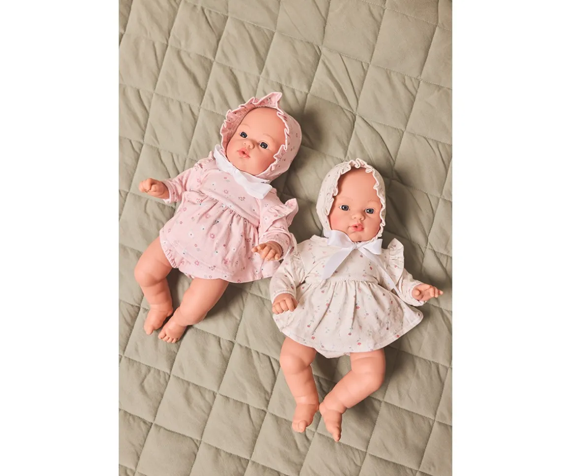 - Incluye: muñeco Helena, vestido con cierres a presión en la parte trasera y gorro bebé con lazada a conjunto
