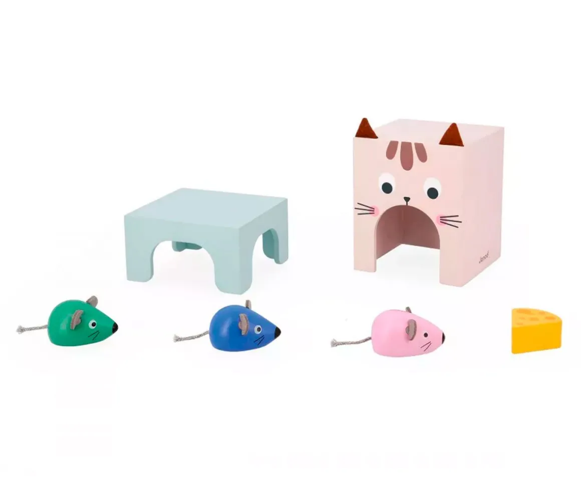 - Incluye: 3 ratones, 12 tarjetas, 1 queso, 2 piezas de gato
