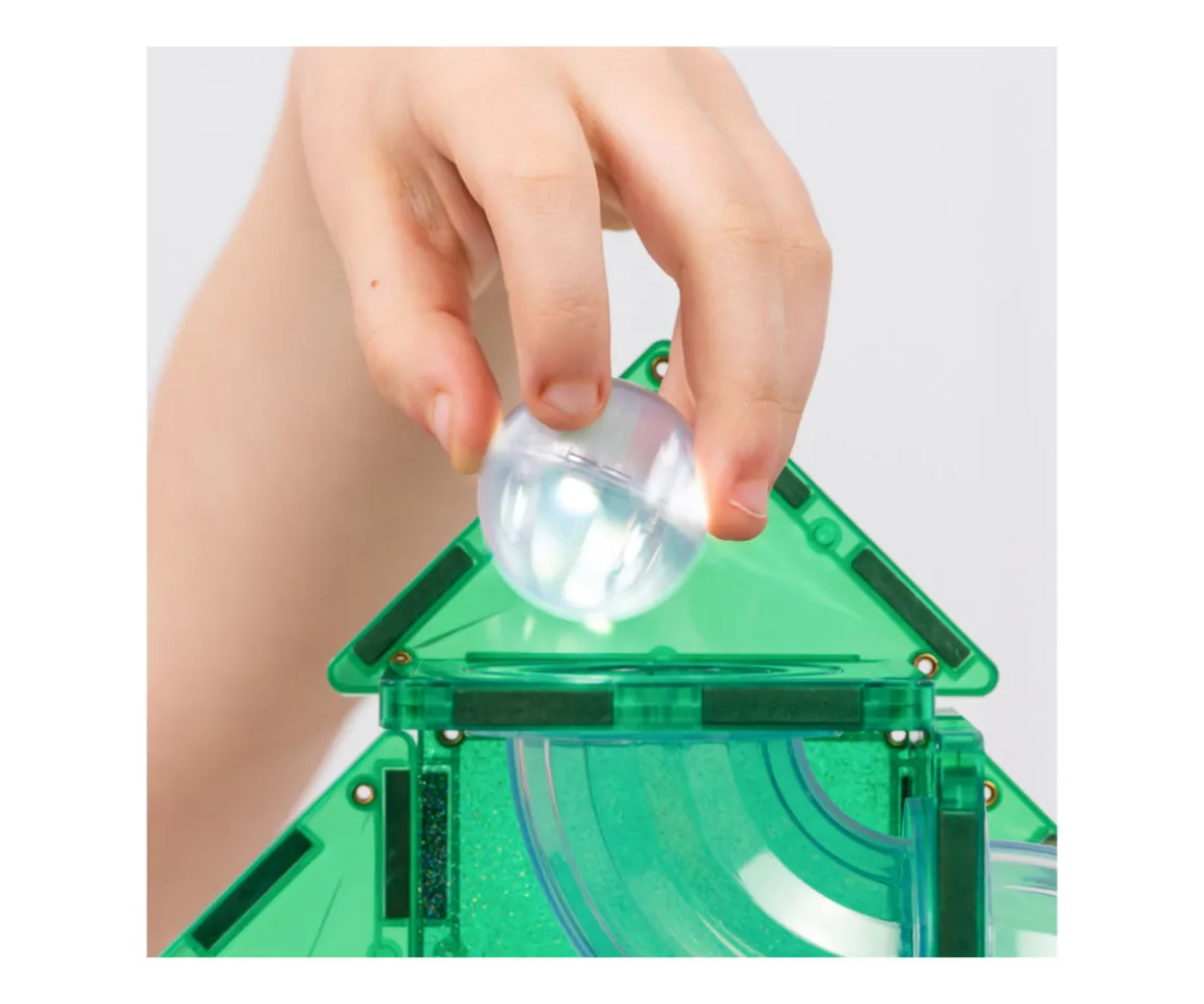Entre sus elementos más destacados se encuentra la bola exclusiva Light-Up, que se ilumina mientras rueda por los tubos transparentes creando un efecto visual fascinante. Los niños podrán diseñar recorridos, torres o árboles de Navidad brillantes, explorando el movimiento, la gravedad y la velocidad de manera divertida.