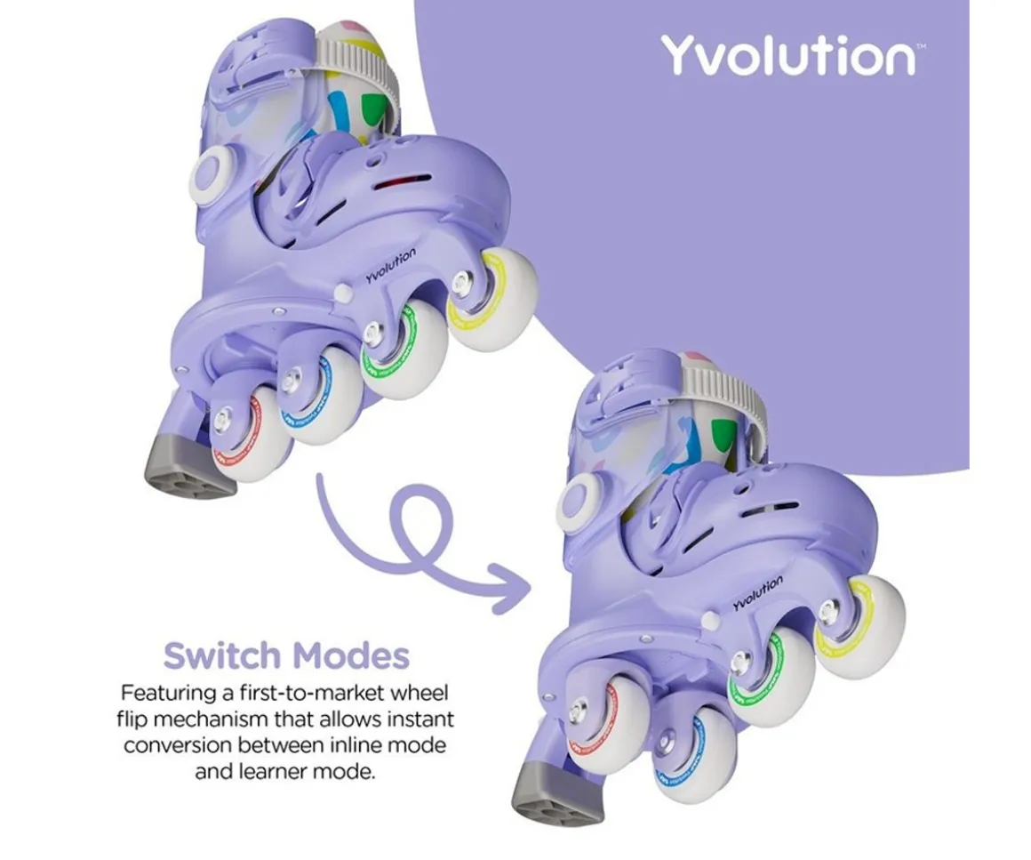 Los patines Yvolution Twista son los patines de ruedas perfectos para niños pequeños. Ajustable hasta en 4 tallas (de la 30 a la 34) con una simple pulsación, son fáciles de poner y descubrir las primeras sensaciones de deslizamiento. Las ruedas traseras modulares en línea o en paralelo evolucionan sin herramientas y ofrecen una estabilidad adaptada al progreso del niño.
