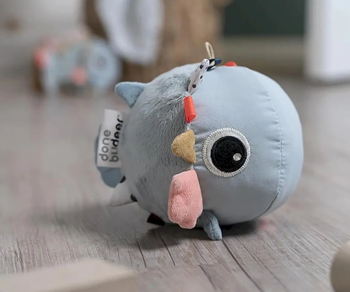 La forma redonda de Puffee es perfecta para rodar. Dale un empujón y hará un sonido intrigante, animando a los más pequeños a gatear tras él. El lindo mordedor de silicona con forma de aleta tiene diferentes texturas para estimular y calmar la picazón en las encías.