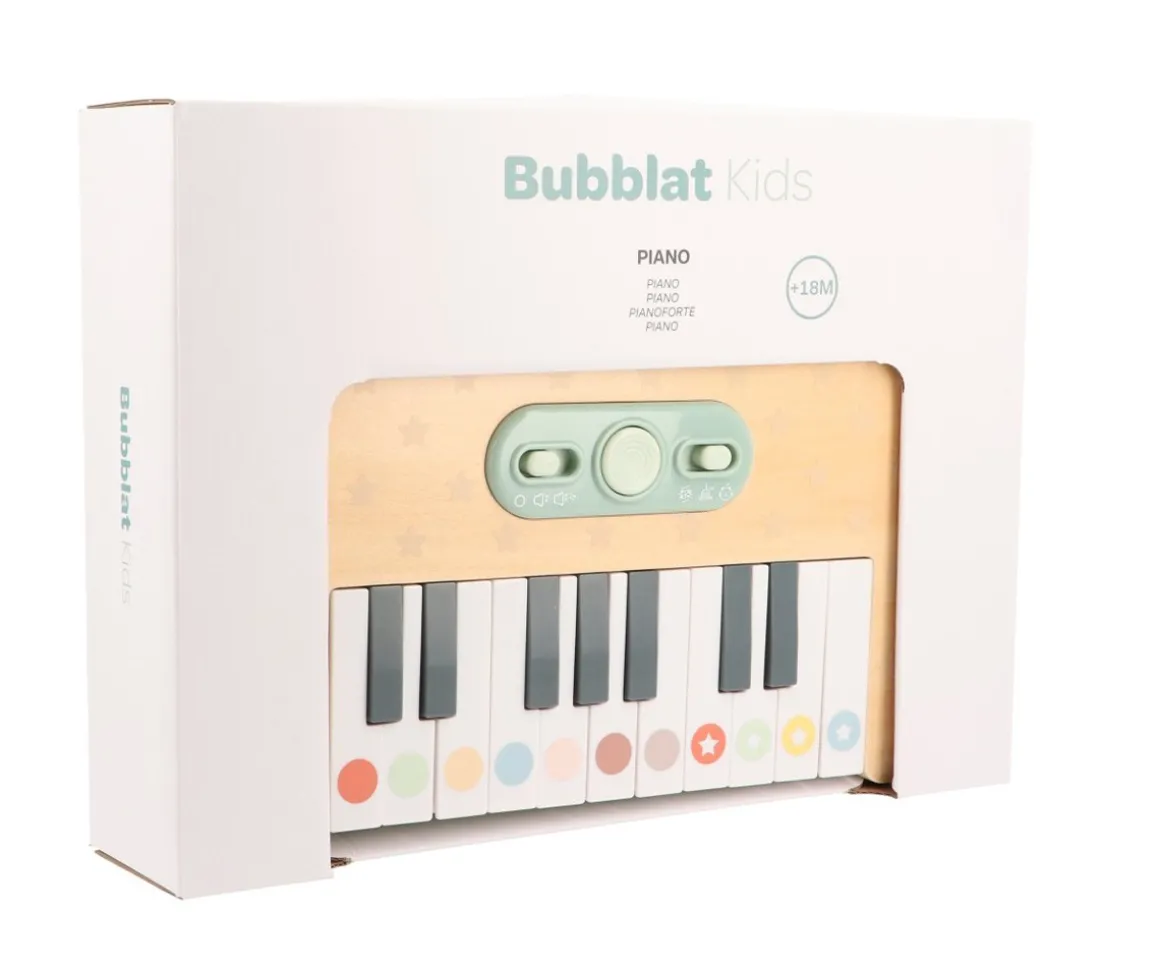 El Piano de Bubblat Kids combina juego, música y aprendizaje temprano en un solo juguete. Inspirado en el enfoque Montessori, tiene un tamaño compacto y está diseñado en delicados tonos pastel con teclas de colores, lo que facilita la asociación visual de notas y la iniciación musical desde una edad temprana.