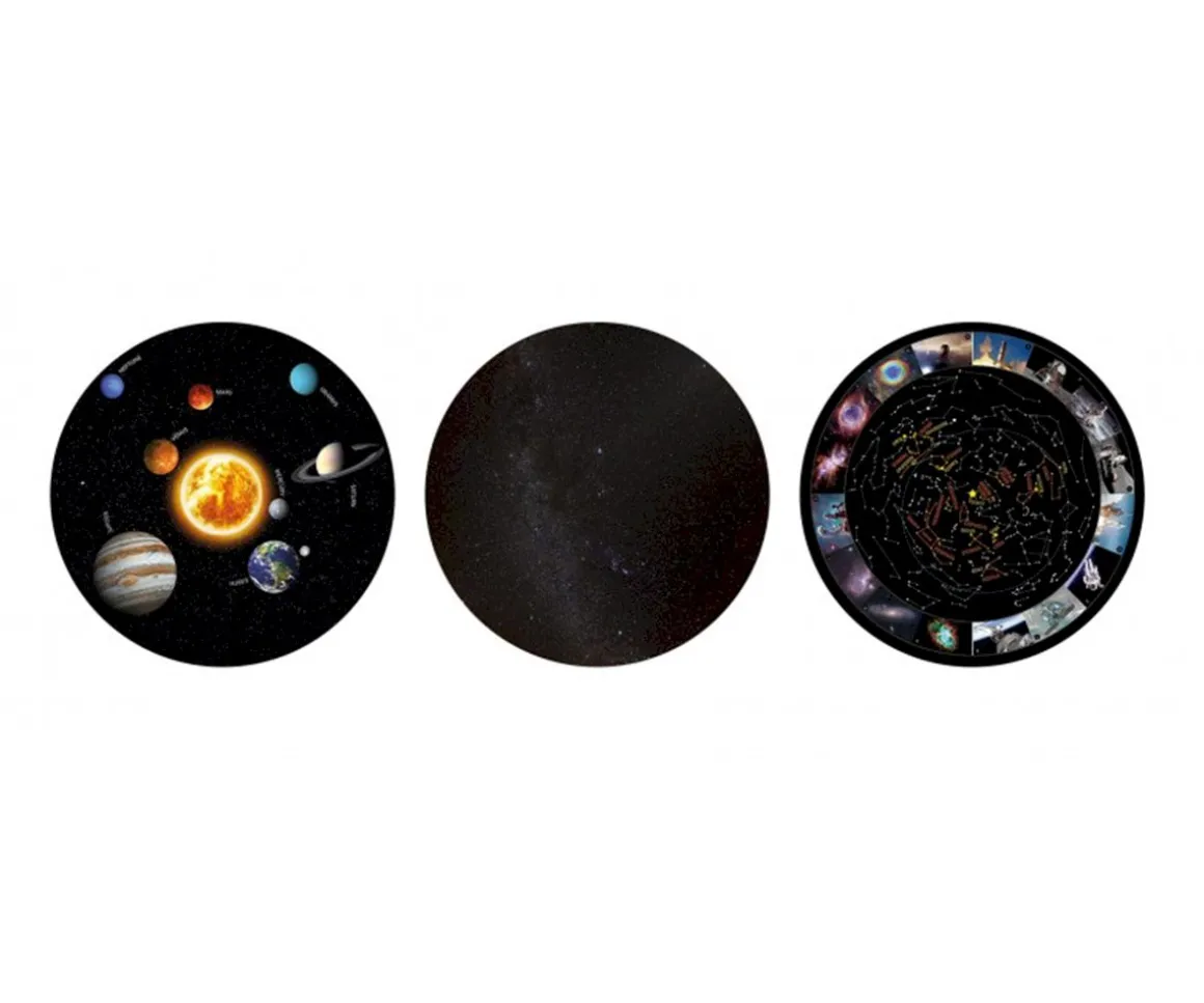 Observa la vía láctea, constelaciones y el sistema solar con los tres discos que vienen incluidos. Equipado con luz LED ultrabrillante y lente de alta definición, ofrece proyecciones ajustables y con temporizador de 30 minutos.