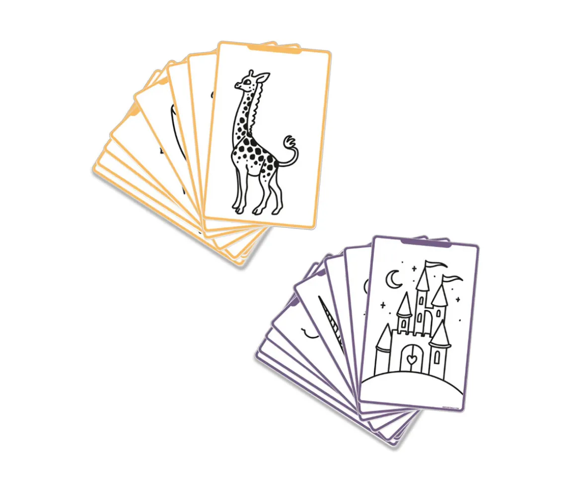 Amplía la diversión creativa con las cartes supplémentaires KIDYDRAW-MINI de Kidywolf. Este refill incluye 60 tarjetas temáticas listas para calcar, con los mundos mágicos de «Érase una vez» y «Animales». Diseñadas para inspirar nuevas historias y estimular la imaginación, son el complemento perfecto para la tableta de dibujo KIDYDRAW-MINI.