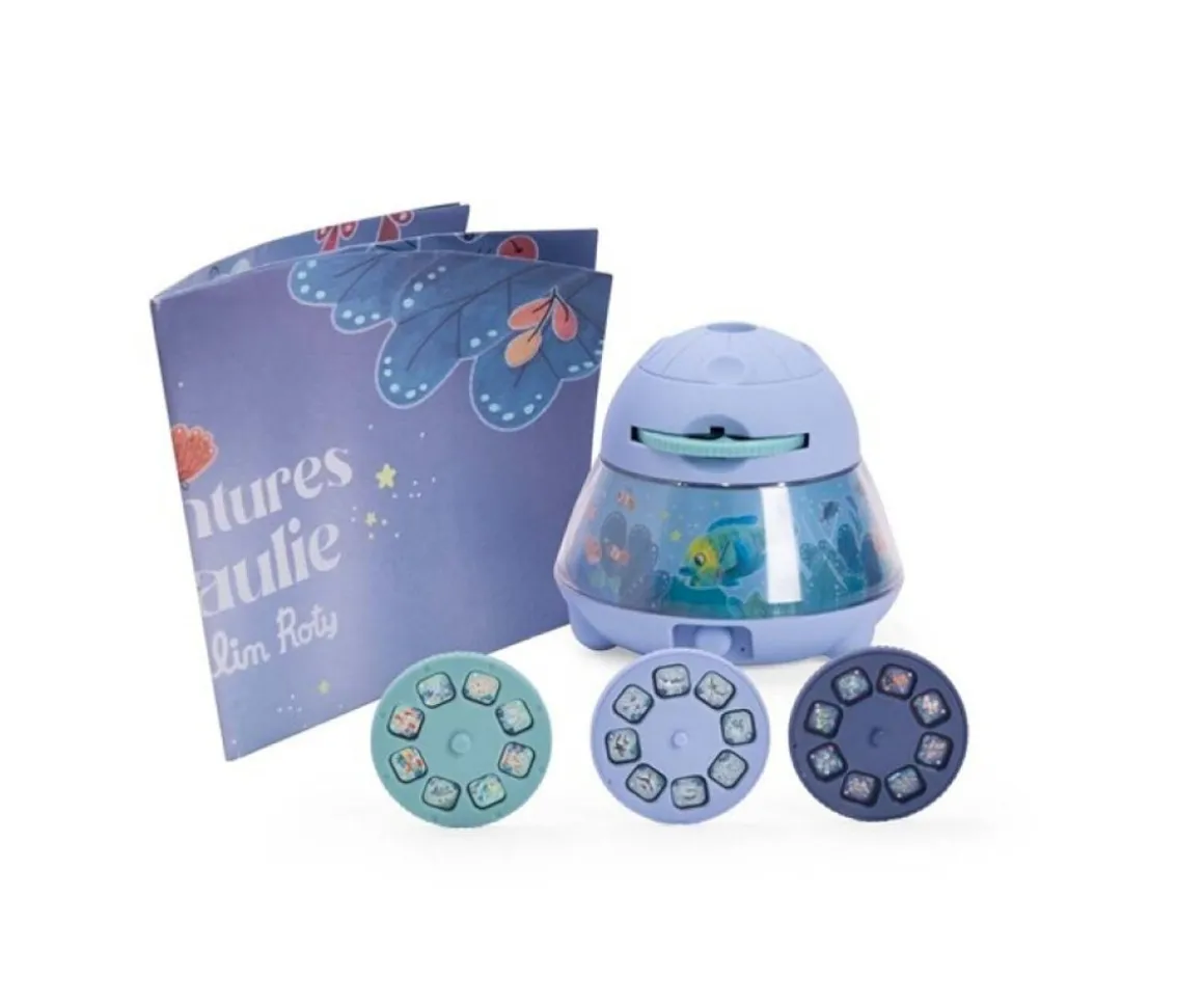 El proyector de imágenes de Moulin Roty cuenta con 24 imágenes sobre los animales y su entorno ideal para estimular la imaginación de los peques así como para que reconozcan algunas de las criaturas del fondo del mar.