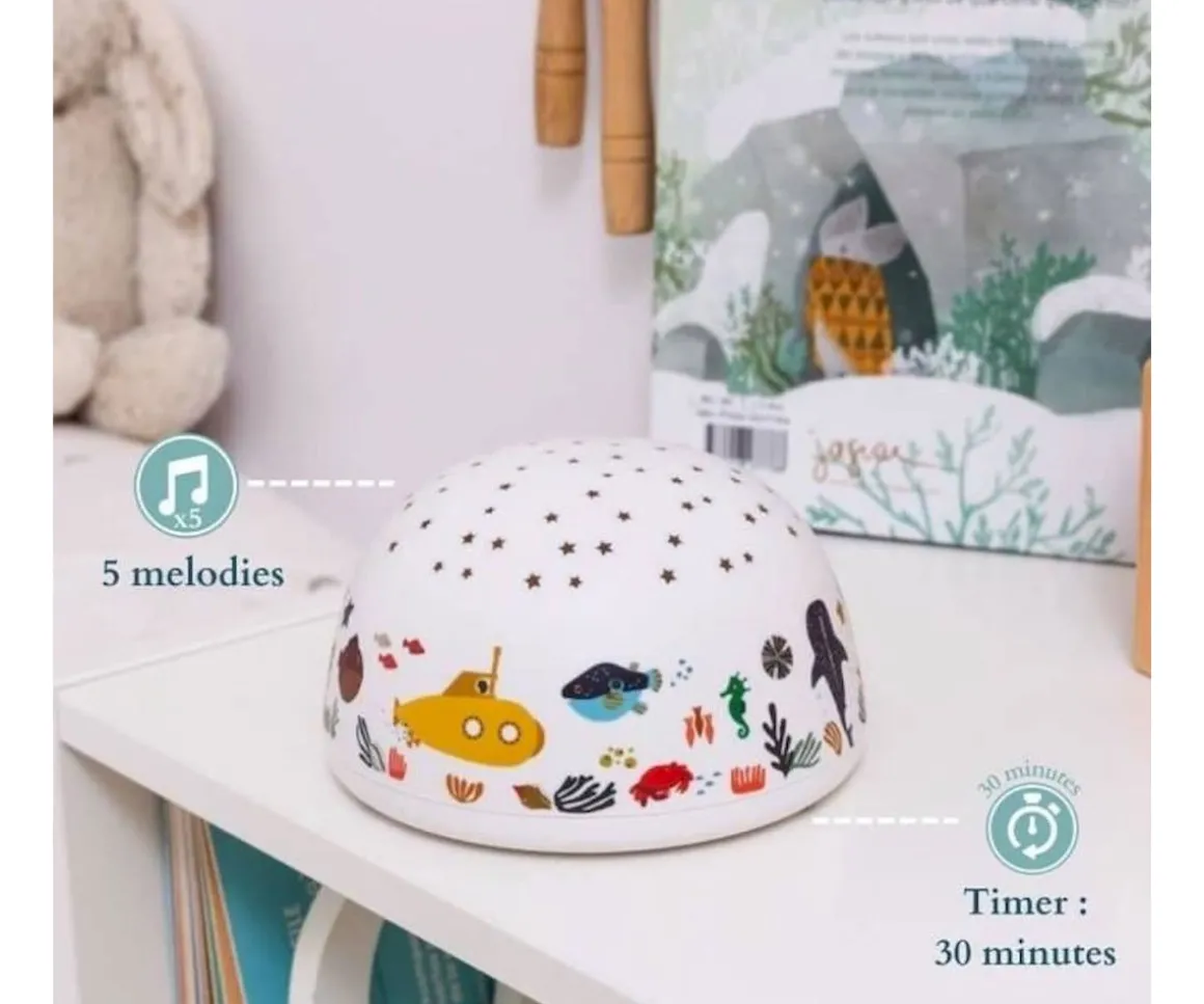 El proyector de luz Olala es el complemento perfecto en la mesita de noche de tu peque y le ayudará a dormir más tranquilo y podrá conciliar el sueño más rápido gracias a sus 5 melodias y diseño con mótivos del Polo Norte.