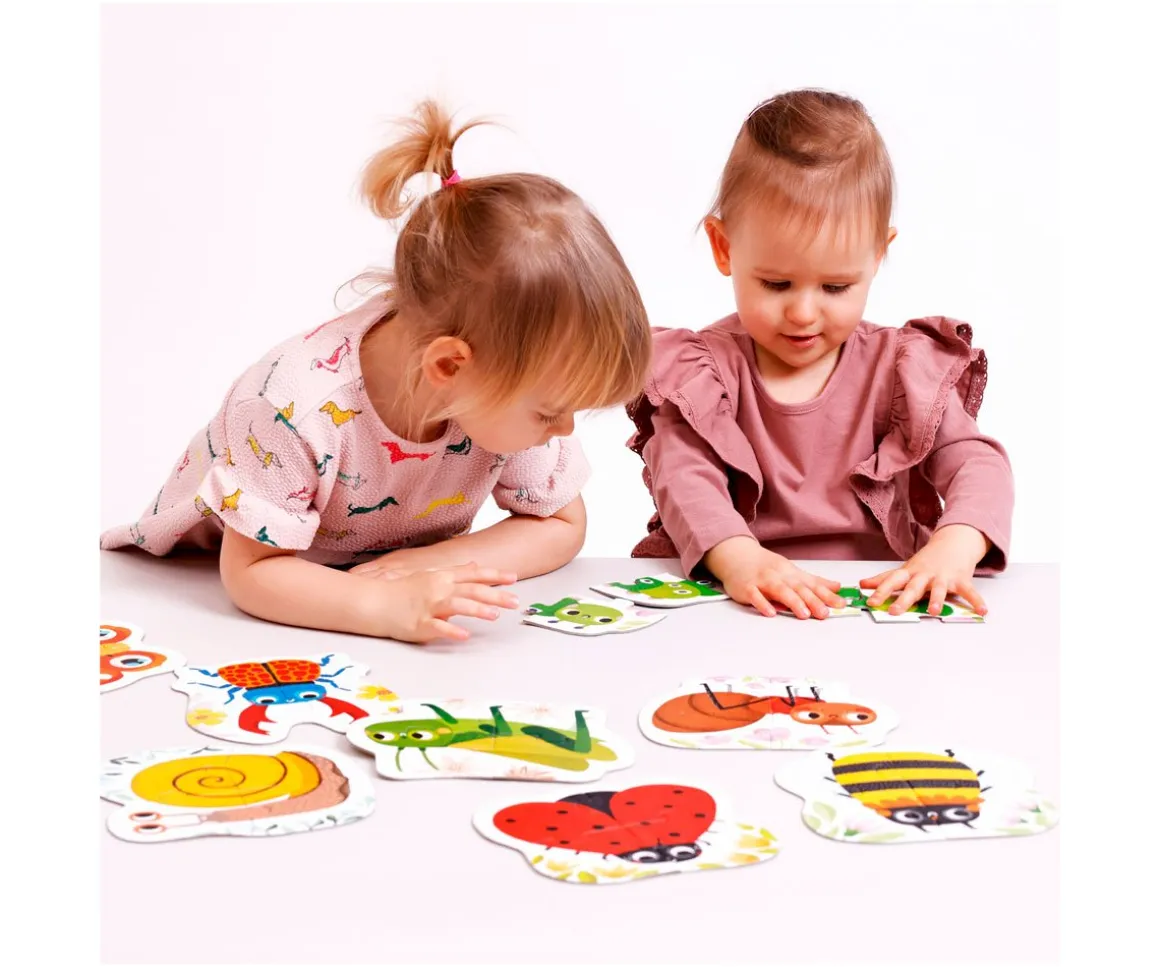 En este precioso puzzle habitan 8 pequeños animalitos del prado y el jardín. Cada animalito consta de 4 elementos grandes que los peques deberán unir.
