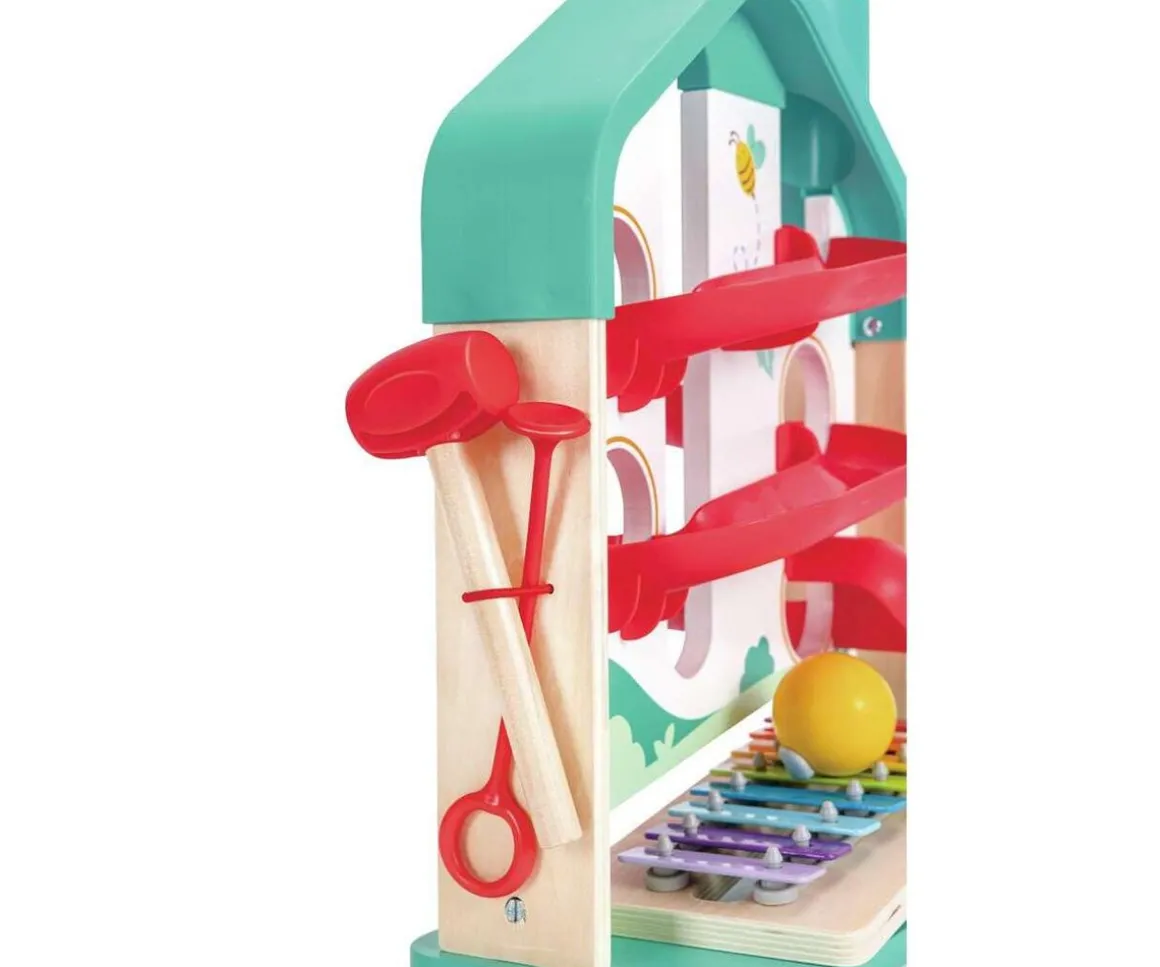 Un original circuito con forma de casa y un xilófono incluído para tocar melodías.