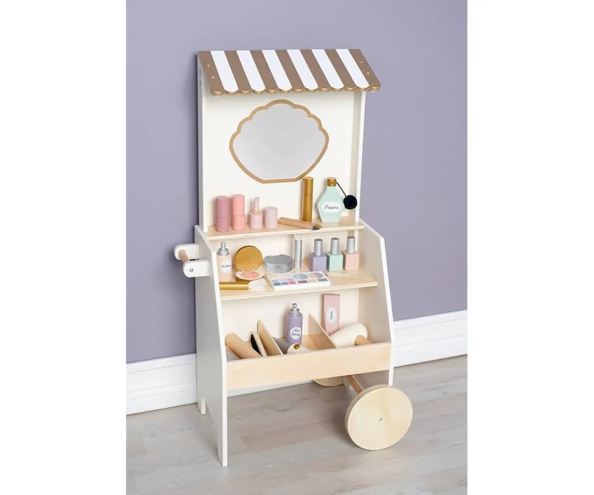 ¡Bienvenido al lujoso salón de belleza! Este salón está lleno de todo lo que necesitas para sentirte la más bella del mundo. Da paso a los clientes y haz que se sienten cómodamente y disfruten del tratamiento. El salón de belleza incluye ruedas para poder transportar fácilmente y poder llevártelo tanto al exterior como al interior de casa.