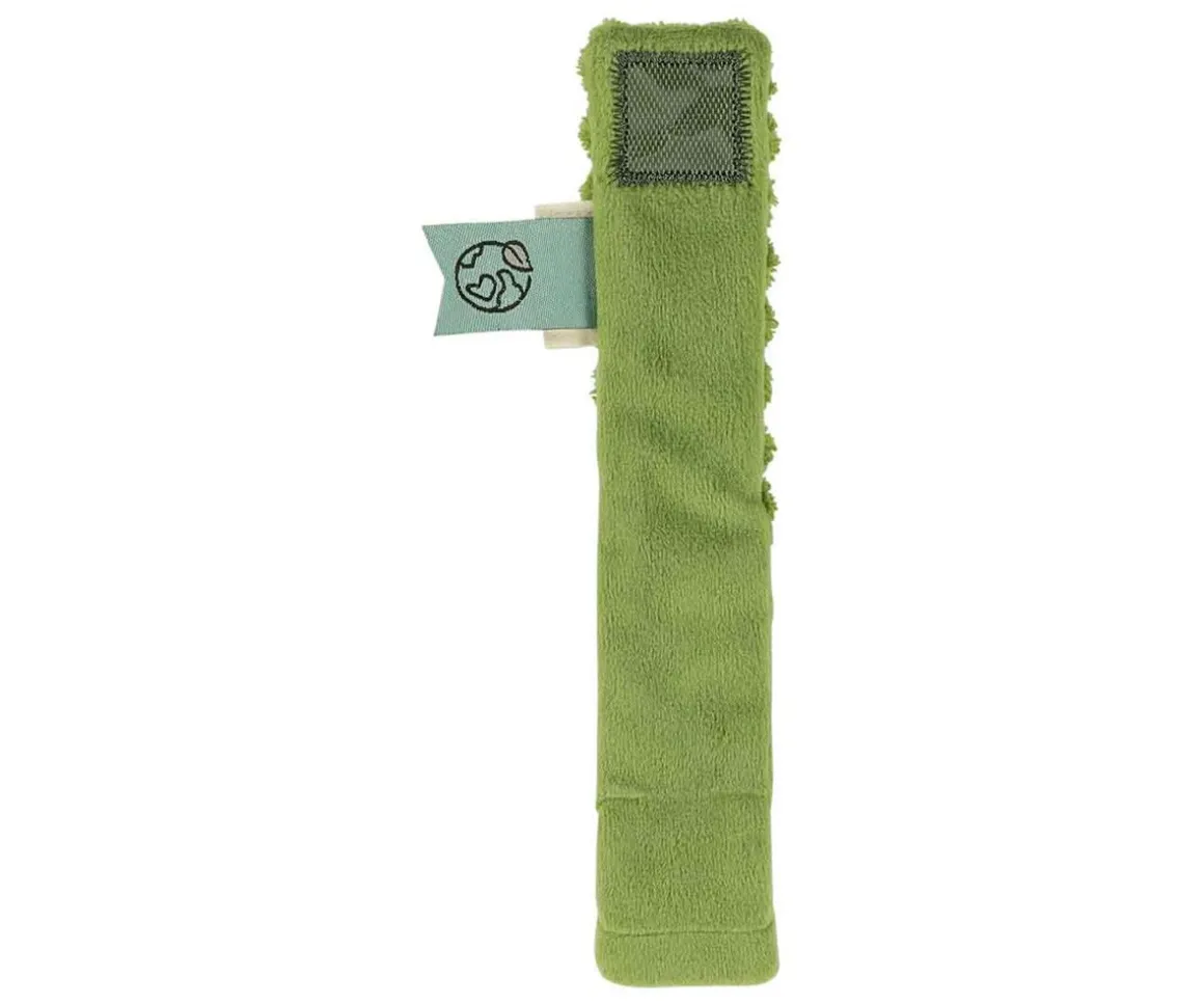 - Material: algodón orgánico, poliéster reciclado, sonajero, papel arrugado