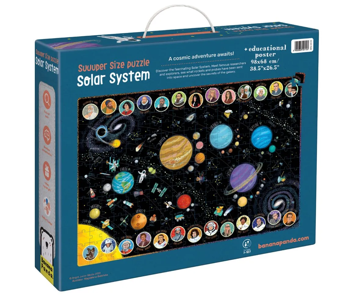 ¡Prepárate para descubrir el sistema solar con este increíble puzzle gigante de Banana Panda! Con 300 piezas este puzzle te lleva a un viaje al espacio.