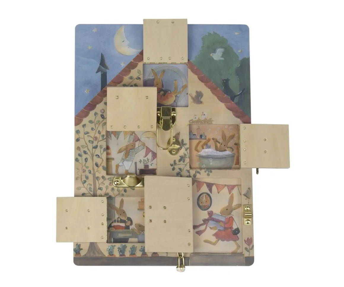 El Tablero con Cierres Madriguera de Conejos de Egmont es un juego educativo y divertido diseñado para niños que combina entretenimiento y desarrollo de habilidades. Los pequeños deberán desbloquear diferentes pestillos y cierres en cada casita para descubrir a los adorables conejitos escondidos.