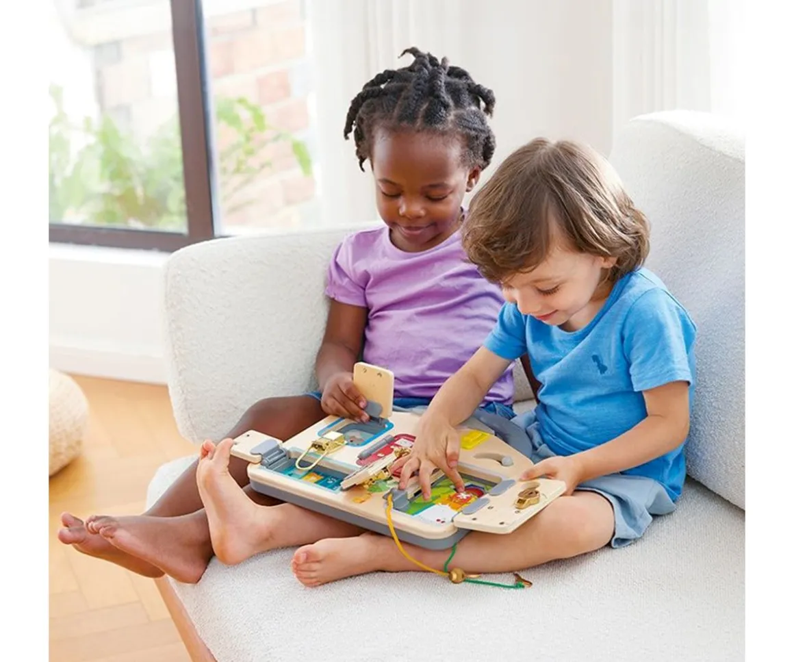 Mejorar la motricidad y la coordinación de tu peque será muy divertido con el Tablero de Actividades Hape.