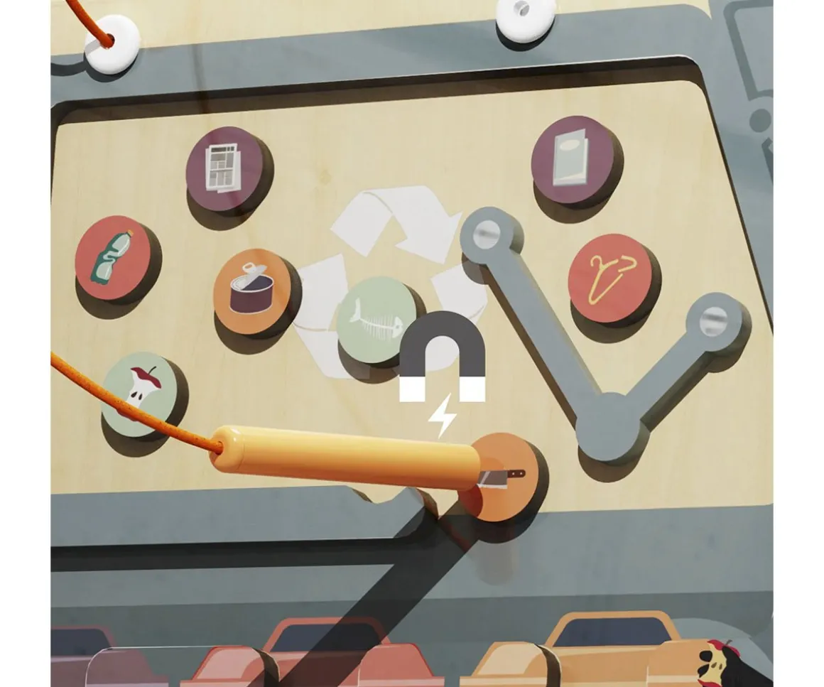 ¿Dónde va el envoltorio de mi merienda? Con este tablero clasificador de residuos, los peques aprenden a separar metal, papel, plástico y residuos orgánicos usando un rotulador magnético. Una forma divertida y educativa de fomentar el reciclaje y el cuidado del medio ambiente.