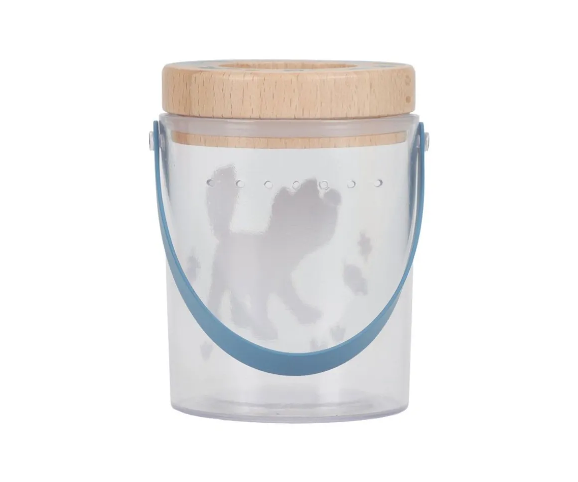 Un tarro con tapa de madera, equipada con una lupa, te permite ver los detalles más pequeños con claridad. La tapa se puede quitar fácilmente y el plástico transparente te permite ver los insectos,plantas, hojad y otras muestras desde todos los lados.El tarro cuenta con orificios de ventilación.