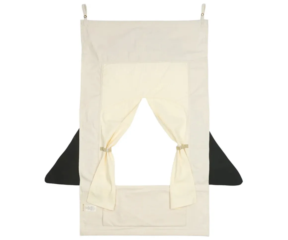 - Fácil de colocar en cualquier puerta con tiras para anudar (se requerirán ganchos o accesorios similares para colocarlo en una puerta)