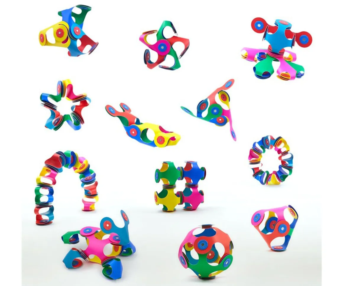 Descubre Clixo, un juguete flexible y magnético que permite crear diseños únicos. Sus piezas se conectan fácilmente con imanes de color rojo y azul. Pueden curvarse para transformar formas planas en 2D en objetos 3D. Perfecto para que los peques desarrollen habilidades espaciales, táctiles y científicas, mientras fomentan su imaginación y creatividad.