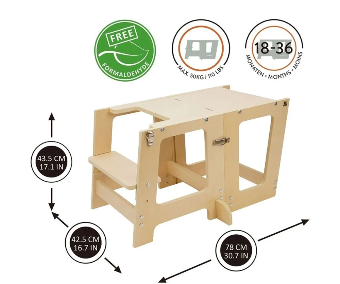 - Incluye pizarra con doble funcionalidad (por un lado es magnética y por otro pizarra tradicional para tizas)