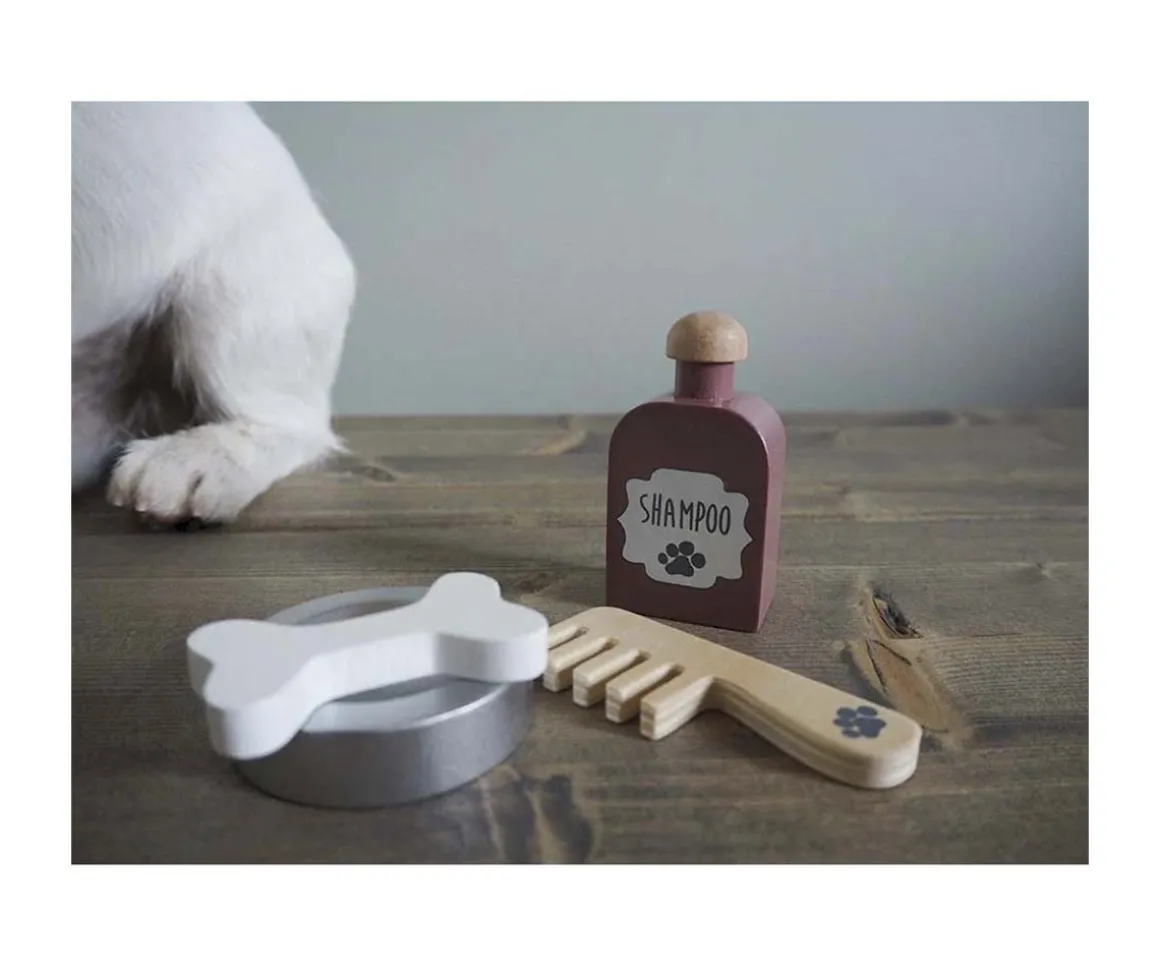- Incluye, casita, perrito, cuenco, hueso, peine y champú